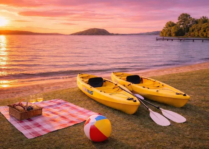 La villa Zodiac Bay Lake Retreat Rotorua|Zodiac Bay Lake Retreat Rotorua está situada a 2 km del Skyline Rotorua Adventure Park y ofrece piragüismo para los huéspedes activos.